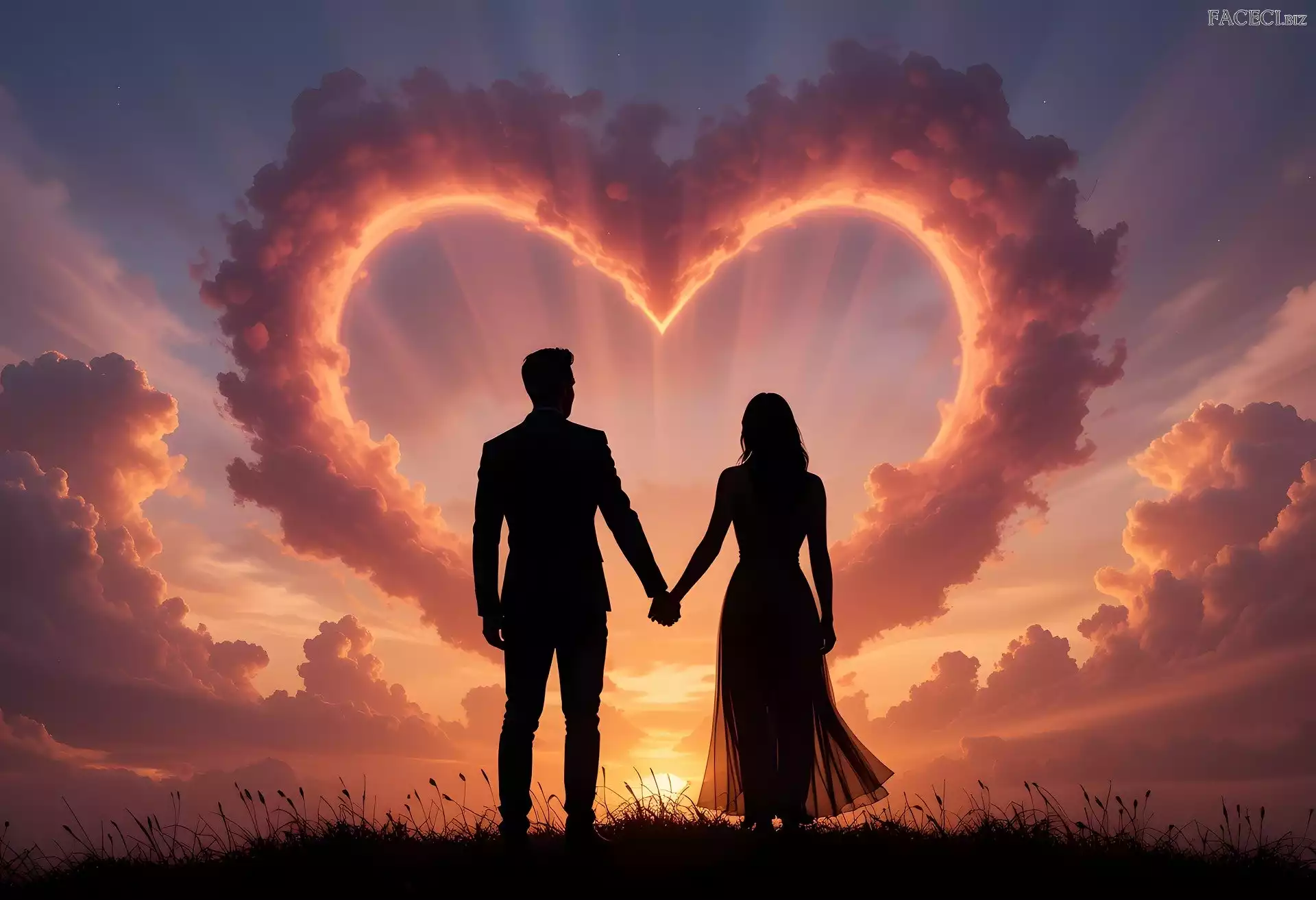 Chmury, Serce, Grafika, Kobieta, Mężczyzna - faceci.biz